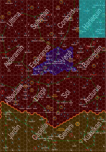 ソロマニ・リム宙域を語るなら、まずは「リムの玄関口」であり、「リム・メイン」の一方の端であるハーレクイン星域から。ここは(かつてほどではないにしろ)星間交通の要所であると同時に、数々の冒険の舞台となっています。GDW時代には『アルゴン・ギ…