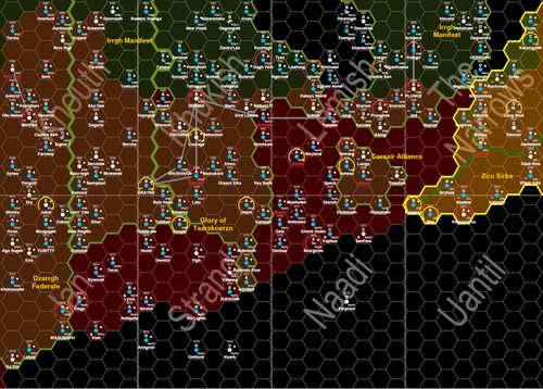 ヴァルグル諸国(Vargr Extents)と飛び地(Vargr Enclaves)に挟まれるように位置し、帝国の銀河核方向(コアワード)側に隣接する「ジュリアン保護領(Julian Protectorate)」では、ヴィラニの血が濃い人類とそのほぼ同数のヴァルグルが共同社会を建設し…